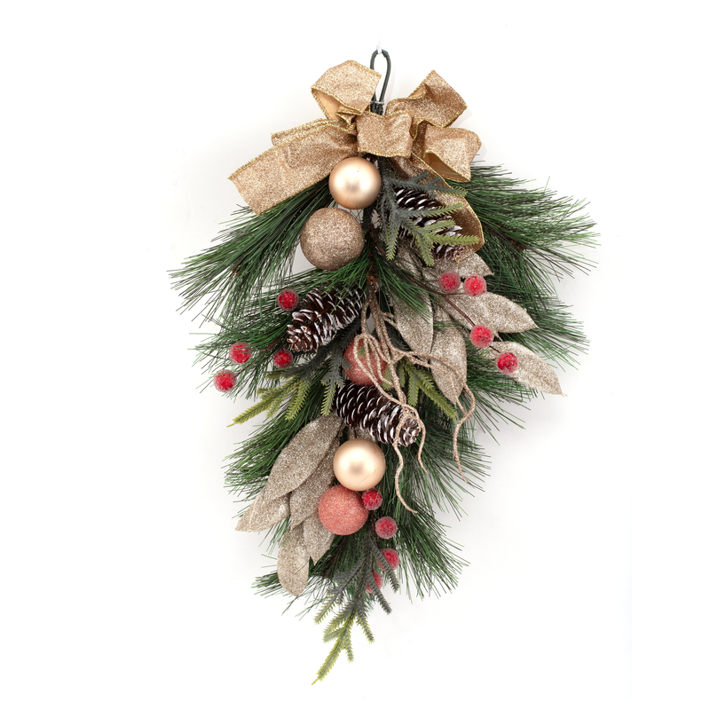 45Cm Christmas Drop Green Pine Laurel Leaf & Berries