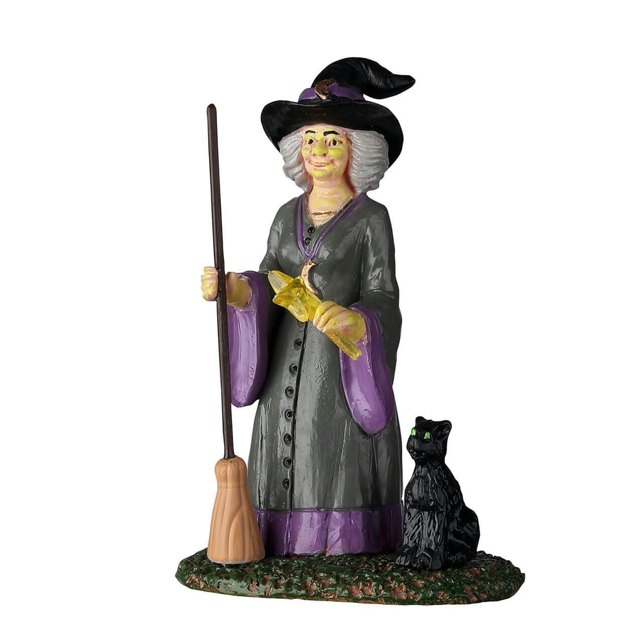 Don’t let this Spooky Town witch’s seemingly happy and pleasant demeanor fool you. Behind those smiling eyes, her brain is whirring because she’s Ready For a New Spell. She’s donned her best gown and hat, grabbed her broom and wand and called her black cat to her side. She’s ready to try that new incantation to see if it produces the results she’s hoping for. Best not get in her way!